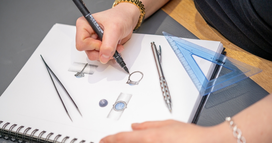 Using a combination of Computer Aided Design (CAD) and hand drawn sketches we aim to the bridge the gap between centuries-old techniques and modern-day expectations. Using the same tools that build space shuttles, we design and create the finest jewellery, whether it is a mechanically-based concept or an organic sculptural shape.